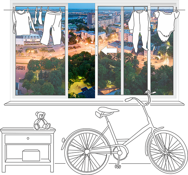 Экономия полезной площади помещения за счёт раздвижного открывания.